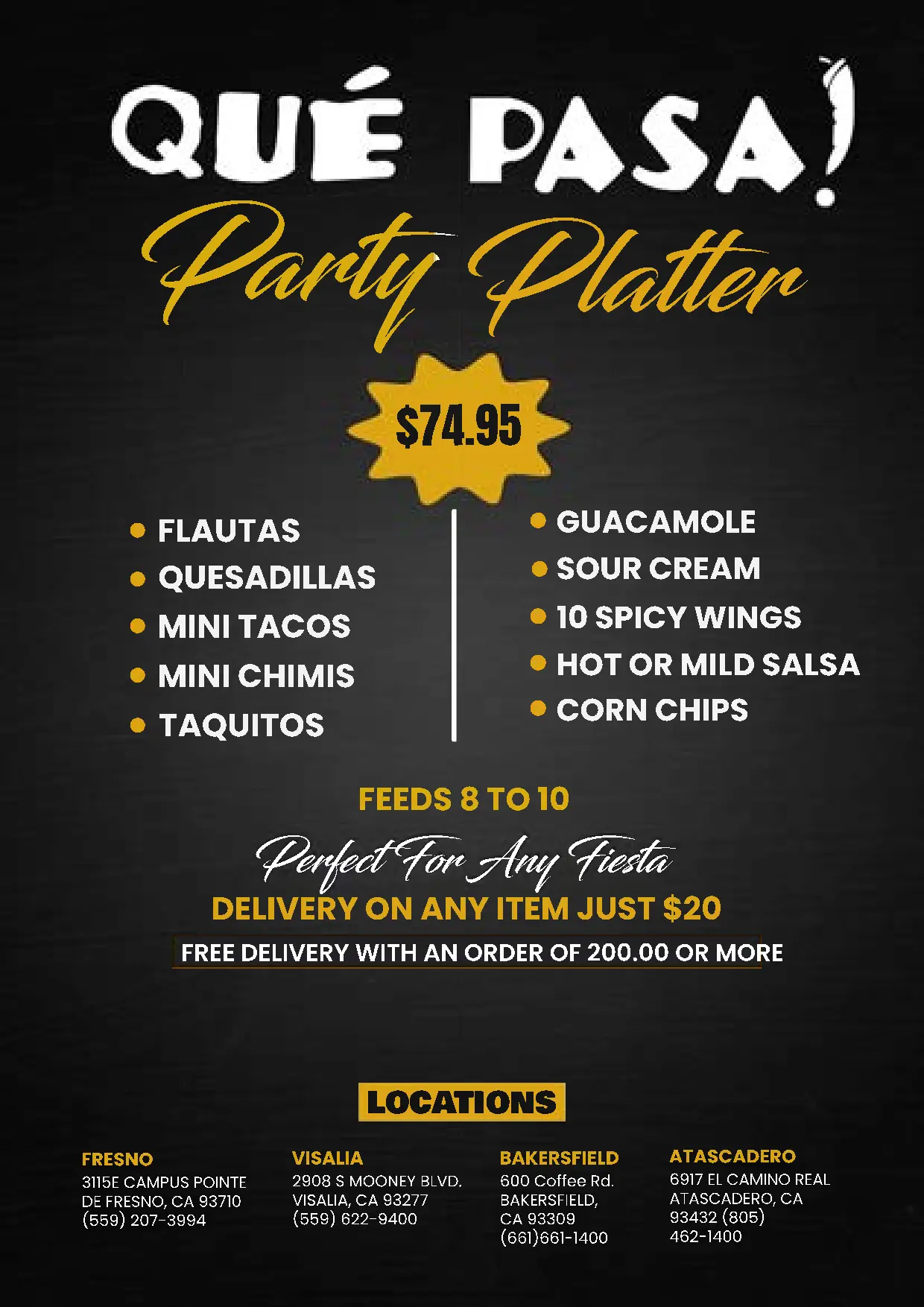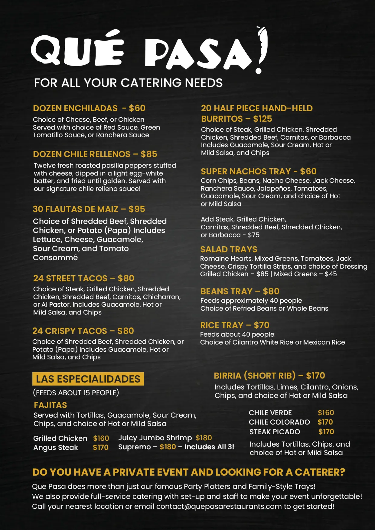 Que Pasa does more than just our famous Party Platters and Family-Style Trays!
